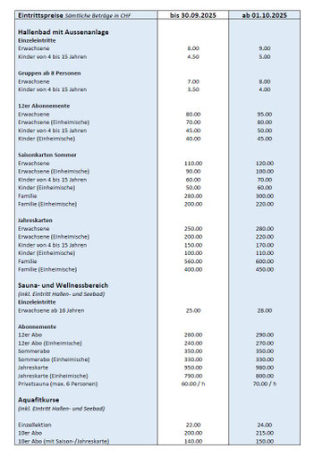 Die Betriebskommission des Hallen- und Seebades hat die Eintrittspreise überprüft und leichte Anpassungen vorgenommen.
