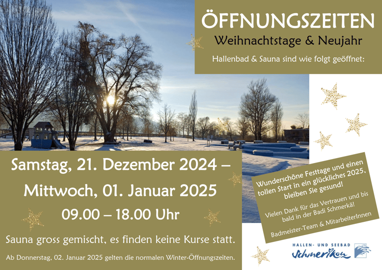 Durch Schulschwimmen und Kurse kann die Benützung der Halle teilweise eingeschränkt sein (siehe auch Belegungsplan).